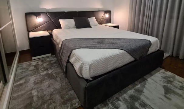 Camas artesanais com design elegante e estofamento personalizado, que combinam conforto e estilo, feitas sob medida.
